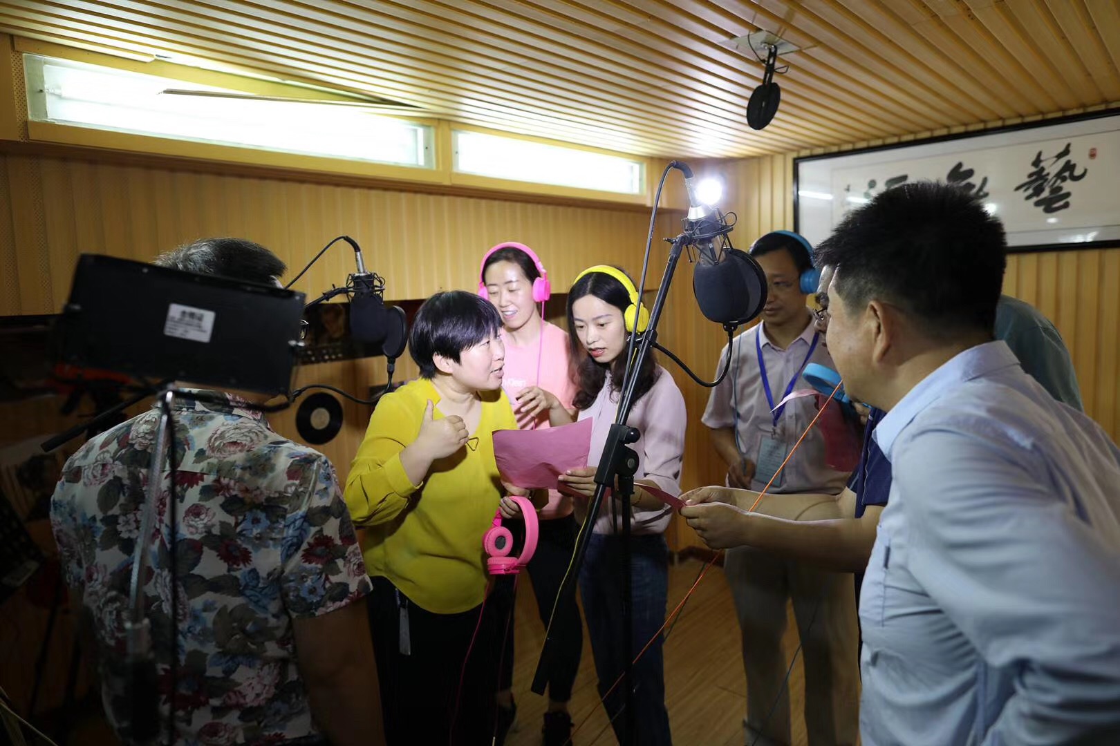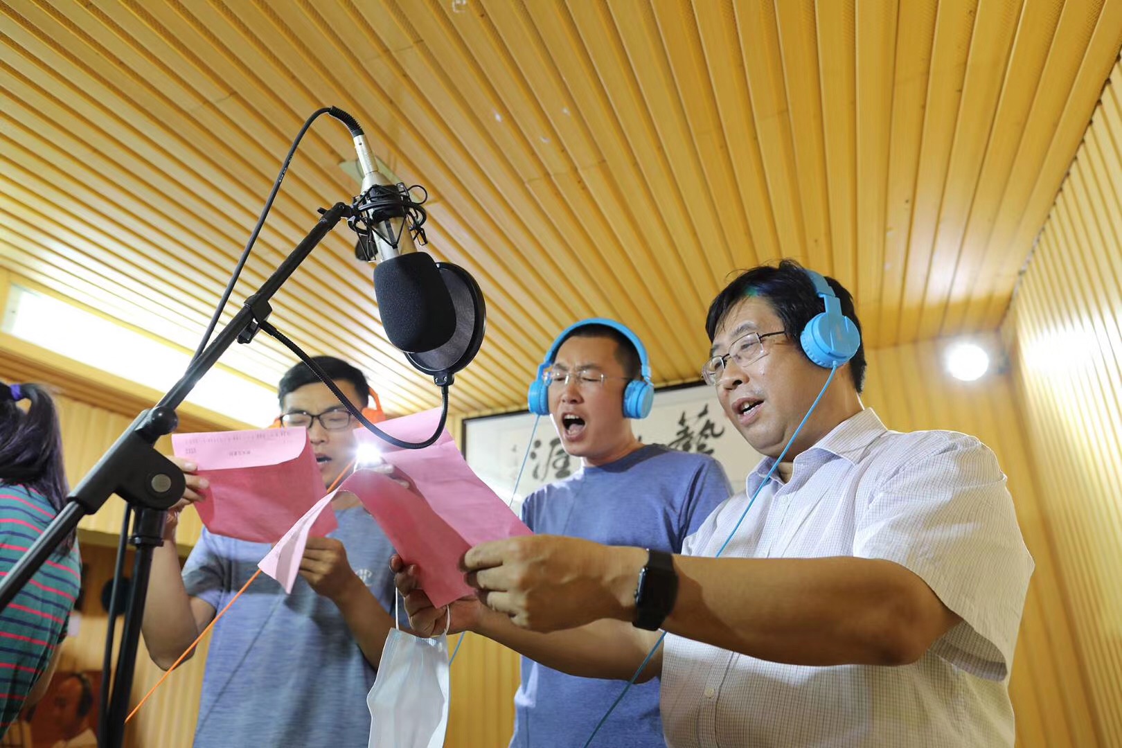 辅导员们牺牲周末时间到录音棚录制毕业“云晚会”歌曲。虽然时间很紧张,但老师们依然一丝不苟讨论着节目的每个细节,力争在晚会上把自己最好的一面呈现给毕业生。