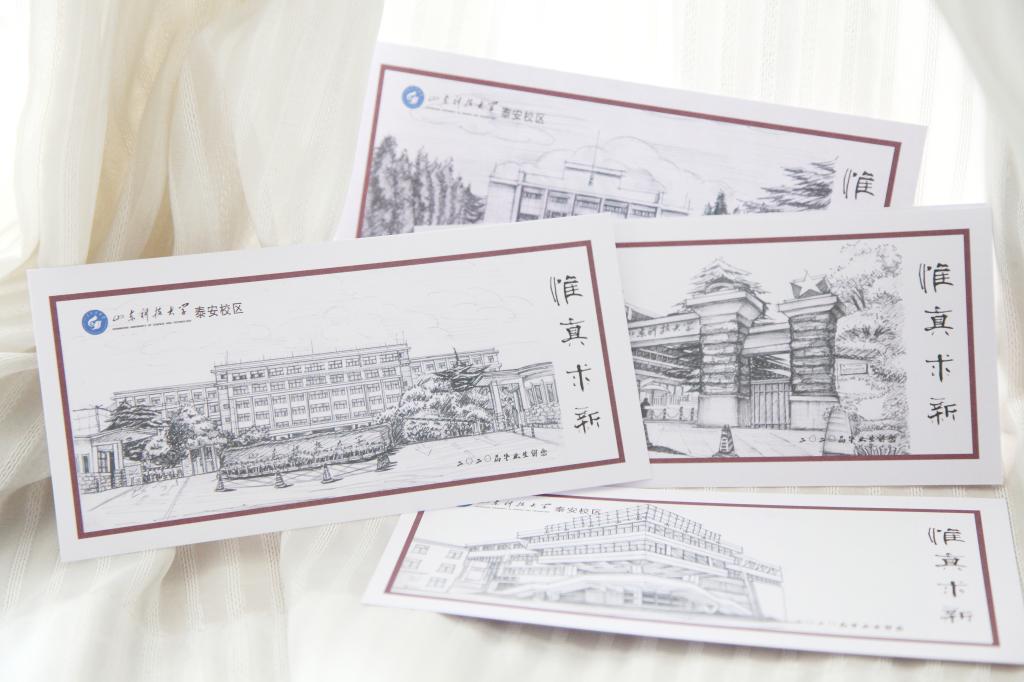 校友手绘明信片以校门、办公楼、礼堂、餐厅等标志性建筑为主题,一笔一画,精心绘制,饱含深情。