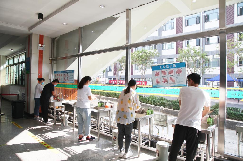 现场演练严格按照疫情防控操作要求和流程进行,模拟了秋季学期开学学生返校进入校园的检测查验场景、返校核验过程中出现体温异常学生的处置场景、临时留观点对体温异常人员进行体温重测场景、启动应急处置场景、临时留观点消毒、食堂就餐场景、学生上课场景等。