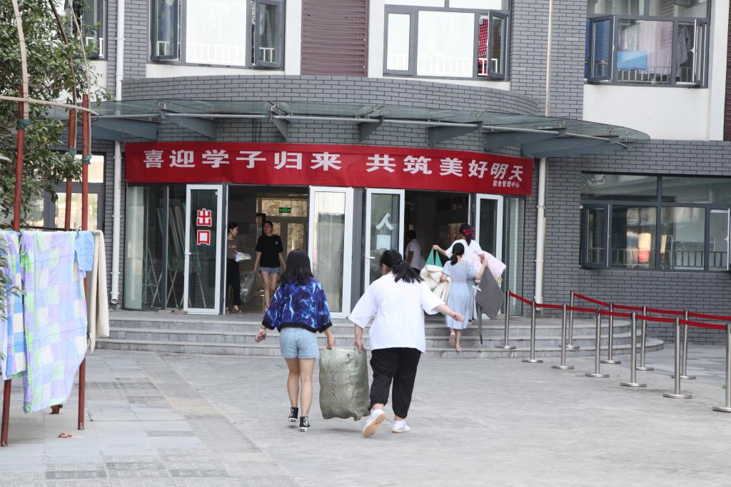 物业管理人员为学生开学返校做准备