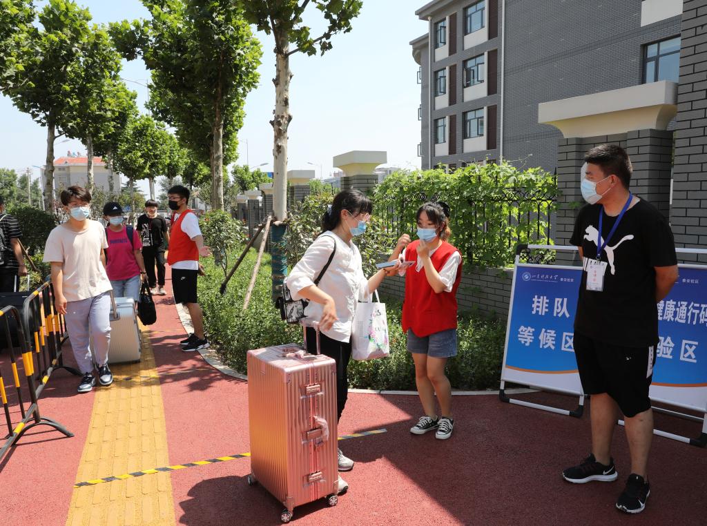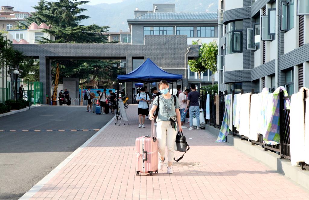 返校当日,在东校园北门、大东院及西校园南门,各学院(部)分别设立返校工作点。一大早,负责引导学生返校的学团干部、学生志愿者等工作人员就已经到位。按照事先安排好的流程,学生经核验健康码、检查身份证件、体温检测、返校报到登记后,完成返校程序,迈进分别一个暑假甚至阔别八个月的校园。返校工作现场忙而不乱、井然有序,各个环节环环相扣、有条不紊。返校学生精神饱满,对新学期的学习生活充满期待。