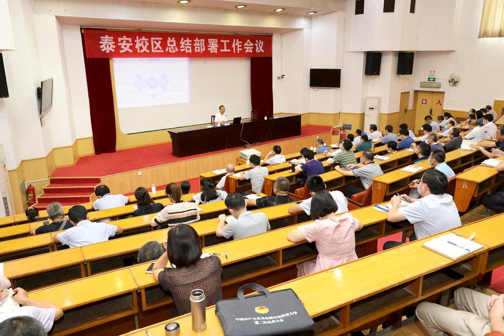 8月30日,泰安校区召开总结部署工作会议,校党委副书记兼泰安校区党工委书记、管委主任王少鹏出席会议并讲话。校区领导,泰安校区、离退休工作处及继续教育学院科级以上干部、学术副院长、辅导员、教研室主任、党支部书记参加会议。会议由校区党工委副书记王民主持。