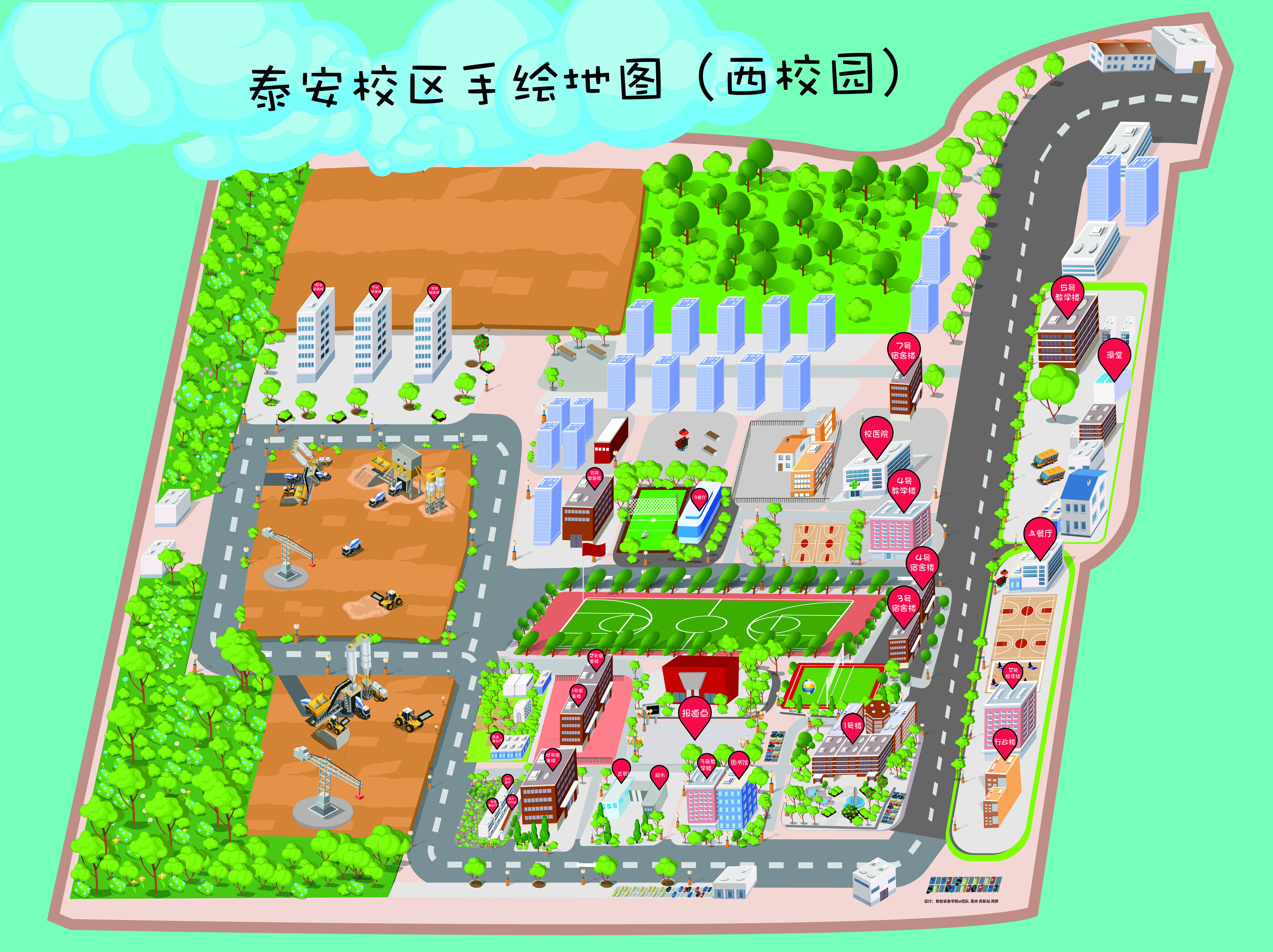 为了小萌新们在校园里“自由飞翔”,由泰安校区党政办公室和智能装备学院VR实验室合作设计的泰安校区手绘地图上线了。只要有了这份地图,找路、找教室、找宿舍、找食堂那都妥妥当当,“地图在手,哪里都有!”