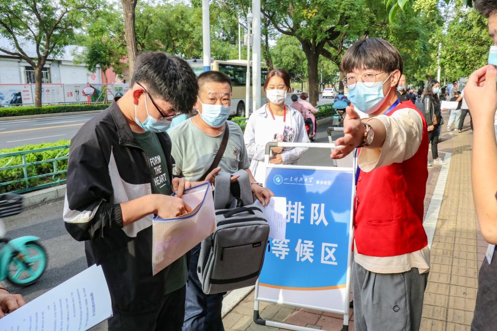 烈日下的“红马甲”是热情的山科红,用汗水为“萌新”保驾护航。(文:张思恬 图:乔洪昊)