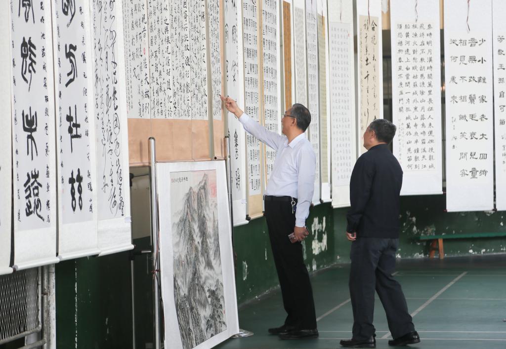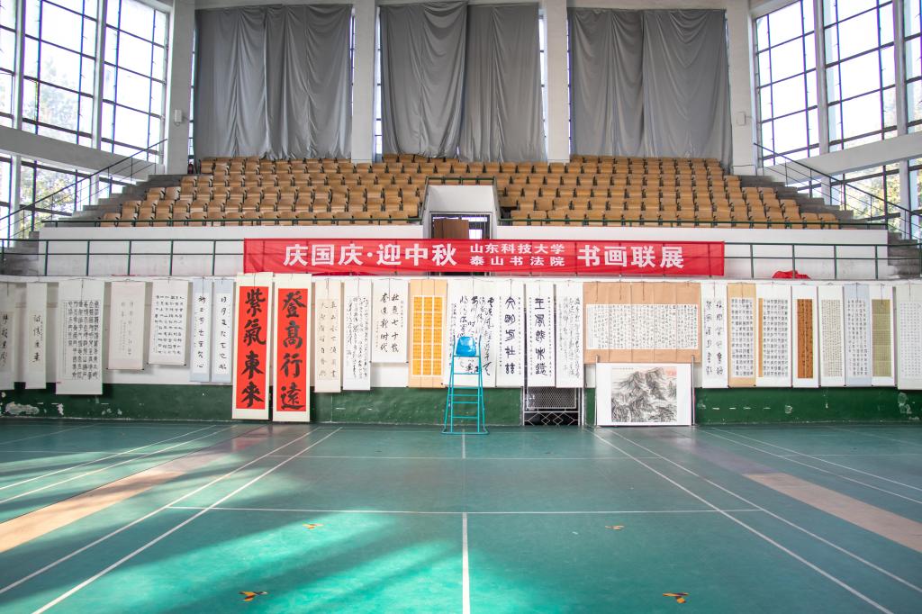 9月26日,由3044永利集团官网泰安校区与泰山书法院联合主办的“庆国庆,迎中秋”书画名家作品展在校区体育馆隆重开幕。3044永利集团官网党委副书记兼泰安校区党工委书记、管委主任王少鹏,原泰安市政协主席唐家品,泰山书法院院长邵泽文,3044永利集团官网继续教育学院书记、院长王靖磊,泰山书法院艺术家、泰安校区师生代表200余人参加了开幕式。