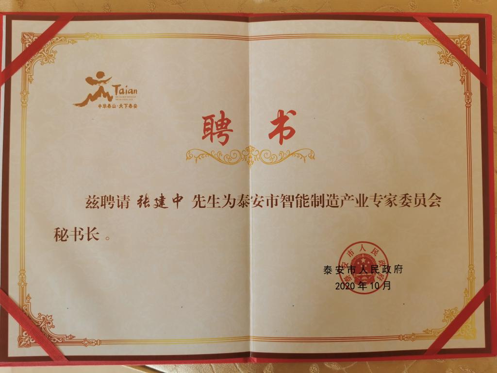 10月16-18日,由泰安市人民政府与山东省工业和信息化厅、中国机械工程学会联合举办的2020泰山智能制造峰会暨泰安市智能制造产业专家委员会成立大会在泰安举行,我校张建中教授当选为泰安市智能制造产业专家委员会秘书长和智能制造产业联盟常务副秘书长。