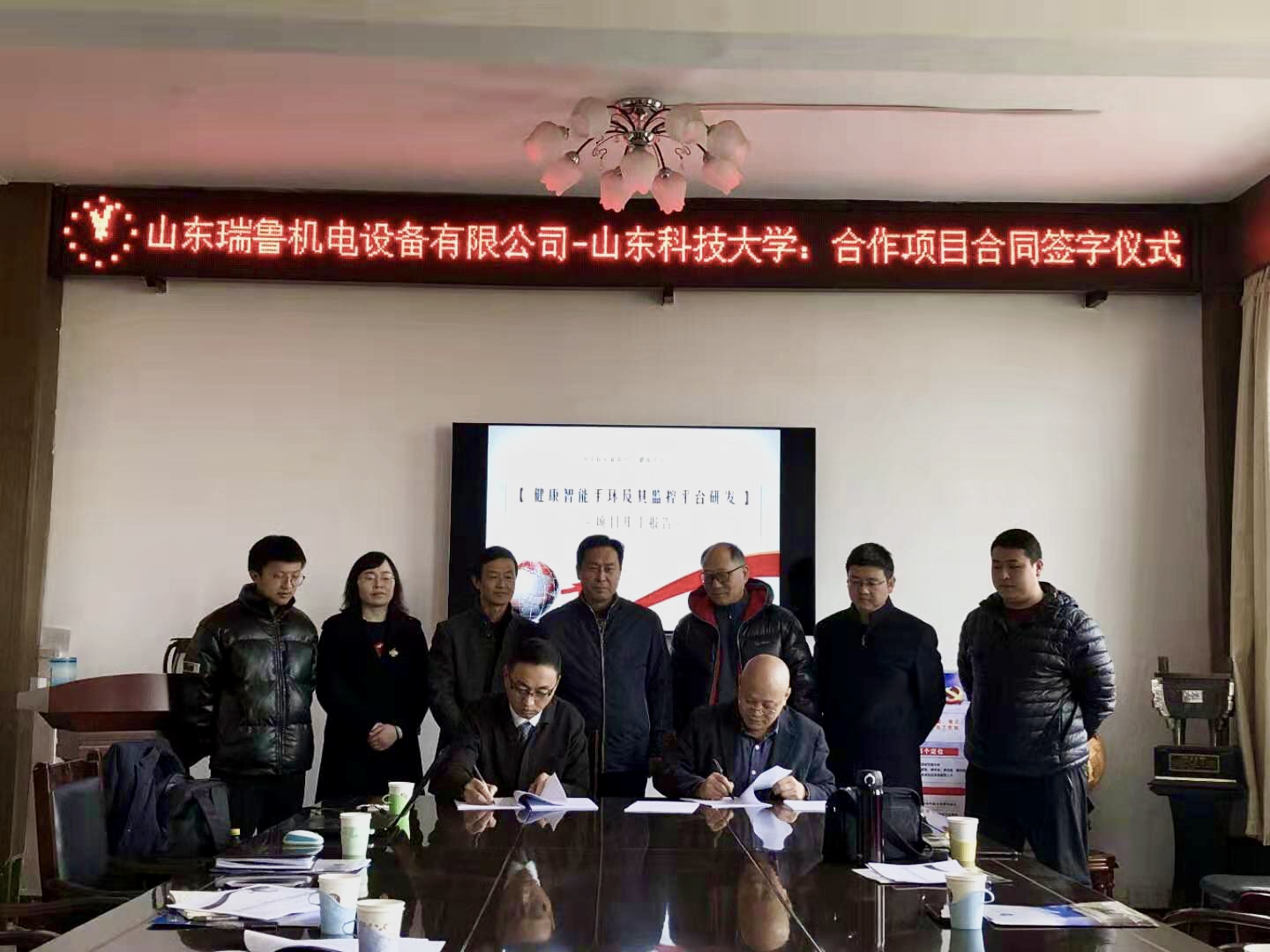 11月24日,智能装备学院与山东瑞鲁机电设备有限公司举行“健康智能手环及其监控平台”合作研发项目签约仪式。泰安校区管委副主任方亨福,智能装备学院院长刘纪敏、副院长娄淑梅,项目负责人文龙日,山东瑞鲁机电设备有限公司董事长崔志先、总经理白桂恒、顾问魏道俊及项目研发团队代表出席签约仪式。