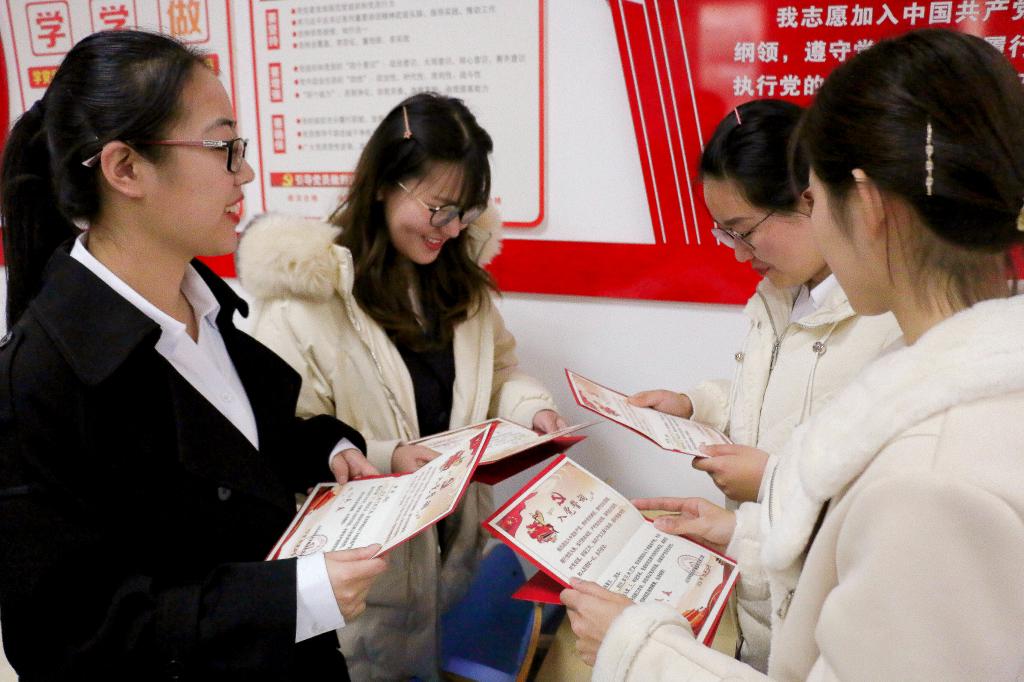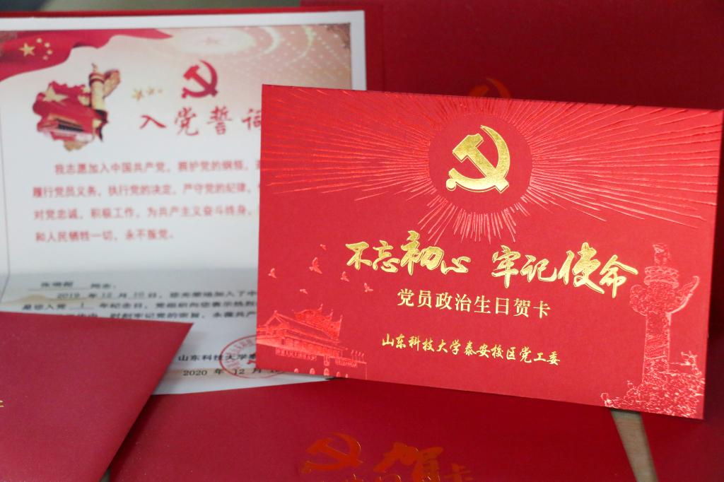 在预备党员转正这个特殊而又意义重大的日子里,泰安校区党工委为全体转正党员赠送了一张政治生日卡。党员们久久注视着这份珍贵的礼物,一遍一遍看着,不肯放过每一处细节。