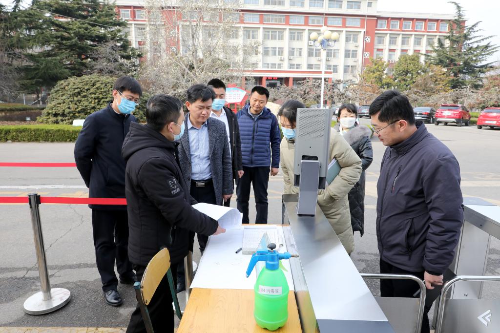 督查人员先后到校园入口处、图书馆、教学楼、餐厅、学生公寓、校医院等地进行了实地检查。
