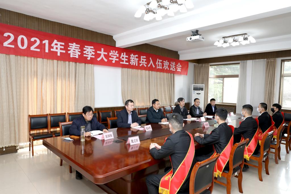 3月10日,校区召开2021年春季大学生新兵入伍欢送会。校区管委副主任方亨福,校区管委委员、学团工作部主任戴东宝,学团工作部、相关学院(部)负责人员和5名在校入伍大学生代表参加会议。会议由戴东宝主持。