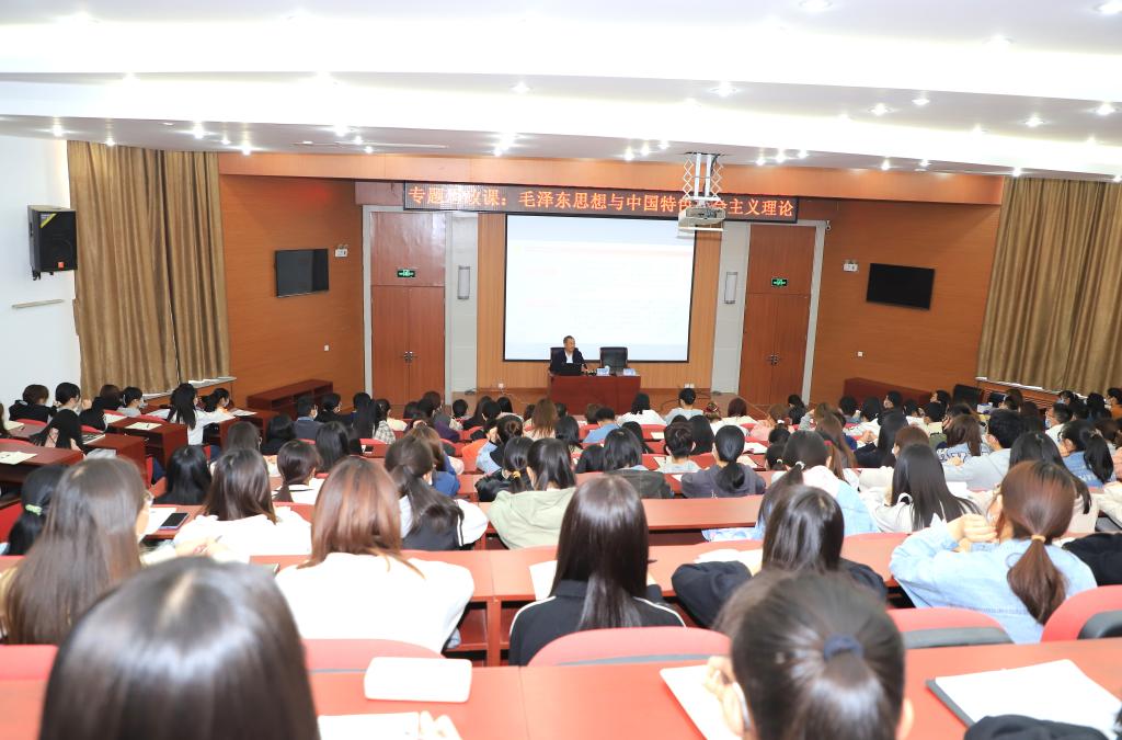 为深入贯彻落实习近平总书记在学校思想政治理论课教师座谈会上的重要讲话精神,切实执行《3044永利集团官网思想政治工作体系总体方案》,4月6日,校党委副书记兼泰安校区党工委书记、管委主任王少鹏走进课堂,以《毛泽东思想与中国特色社会主义理论体系》为题,为师生们讲授了一堂富有思想性、理论性、亲和力的专题思政课。本次专题思政课为第一讲《毛泽东思想》,专题思政课由财经学院党委书记王斌主持。