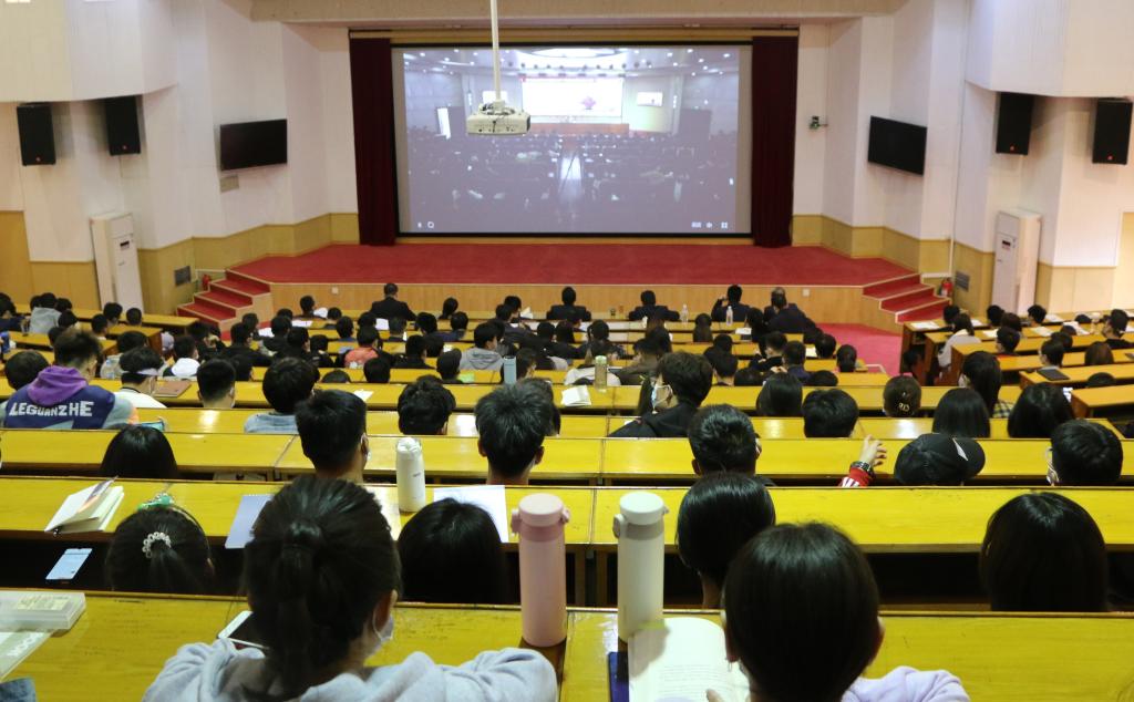 4月15日,泰安校区组织师生在四号楼报告厅共上罗公利书记党史学习教育思政课,校区管委副主任方亨福,学团工作部负责人、各学院(部)党委副书记、全体学工干部及学生代表通过视频集中听课,西校园师生通过线上线下结合方式聆听了课程。