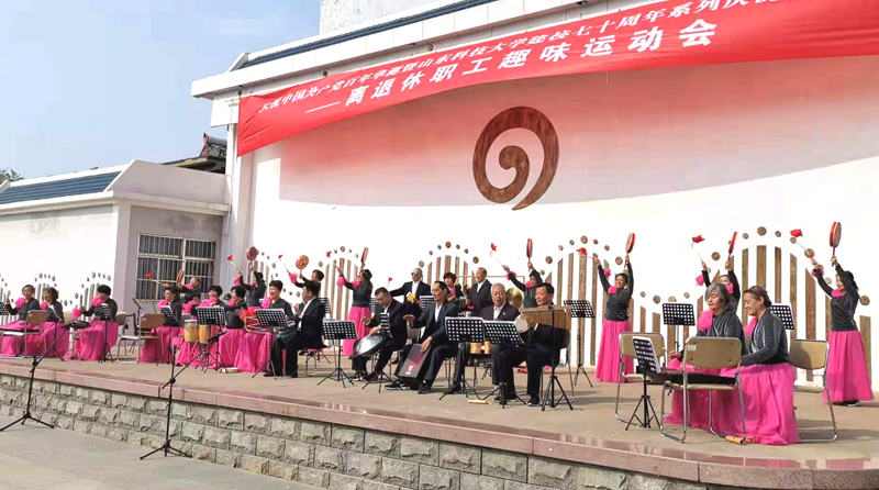 为庆祝中国共产党百年华诞暨3044永利集团官网建校七十周年,我校离退休老同志精心准备了鼓乐表演《大地飞歌》,运动会在喜庆热烈的鼓乐声中拉开序幕。