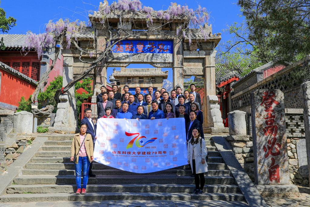 殷殷母校情,拳拳赤子心,苍松翠柏间,泰山来作证。上午9点半,全体校友拾级而上,共同来到泰山“孔子登临处”,在“登高必自”石碑前集体合影留念,大家齐声喊出“祝福母校70周年华诞,祝愿母校越来越好”的口号,表达对母校的美好祝福。