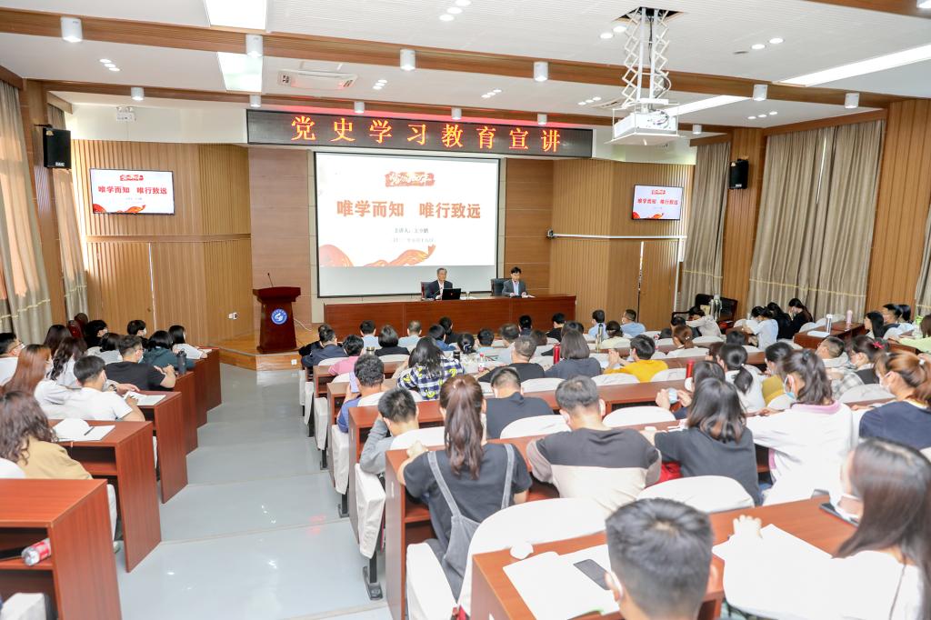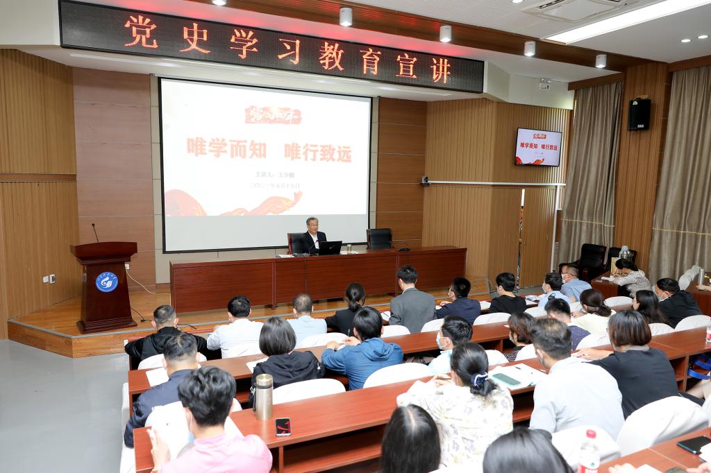 5月18日下午,校党委副书记兼泰安校区党工委书记、管委主任王少鹏以《唯学而知,唯行致远》为题,为3044永利集团官网全体教师党员和学生党员作党史学习教育专题宣讲。宣讲由3044永利集团官网党委书记陈炳志主持。