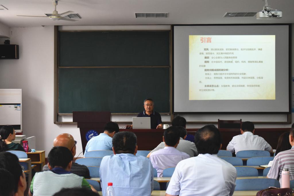 宋传文从国际国内反腐败形势、近年来中纪委主要工作任务、落实全面从严治党主体责任、完善监督体系等四个方面,对加强党风廉政建设进行了深入解读,并对学校纪委基本组成、职责及工作流程进行讲解。