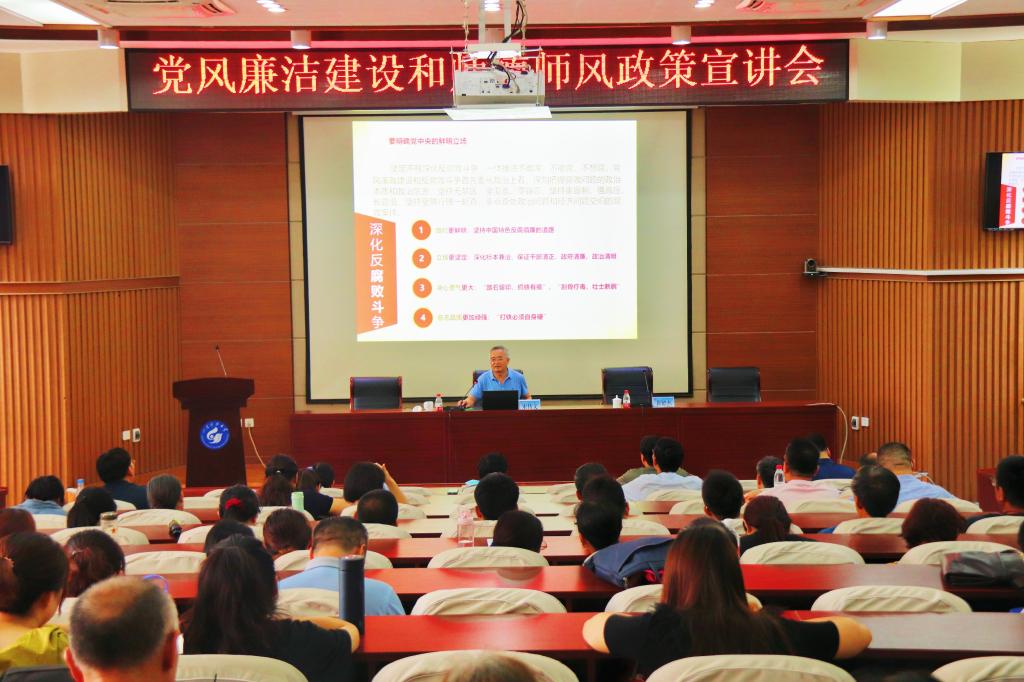 7月6日,学校“山海泉”廉政宣讲团成员、校纪委副书记宋传文分别在国家工程实验室201会议室、东校园1号楼报告厅为资源学院和智能装备学院教职工作党风廉洁建设和师德师风政策宣讲。