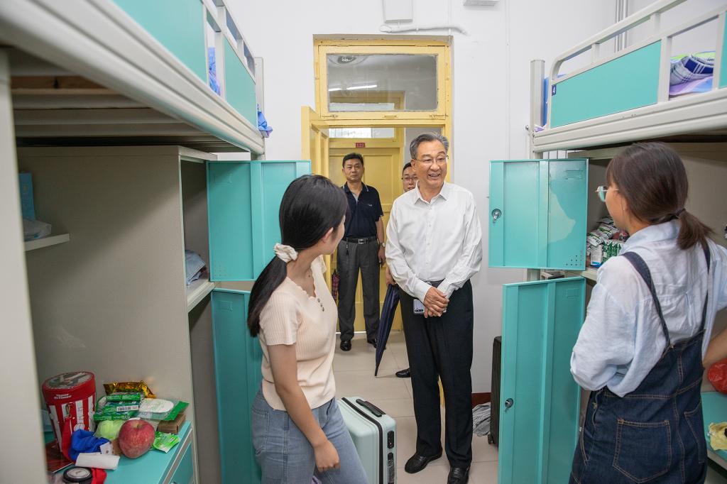 校党委副书记兼泰安校区党委书记、管委主任王少鹏及校区领导来到报到现场及新生宿舍等处,对迎新各环节工作进行检查指导,了解新生报到情况,与新生及家长亲切交流,并慰问坚守在迎新工作一线的师生。