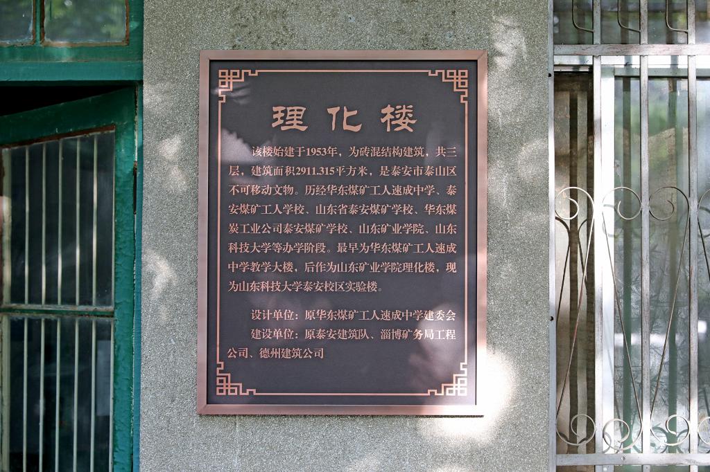 理化楼始建于1953年,历经华东煤矿工人速成中学、泰安煤矿工人学校、山东省泰安煤矿学校、华东煤炭工业公司泰安煤矿学校、山东矿业学院、3044永利集团官网等办学阶段,最早为华东煤矿工人速成中学教学大楼。以理化楼、1号办公楼、校园西门为代表的科大老建筑是学校建校以来最早的一批建筑,已被认定为泰安市泰山区不可移动文物。一些老建筑由老一辈科大人亲手参与设计、建造,它们见证了科大筚路蓝缕、栉风沐雨的艰苦创业历程,见证了学校风雨沧桑的历史和翻天覆地的变化,是广大校友内心深处最难忘的科大记忆。