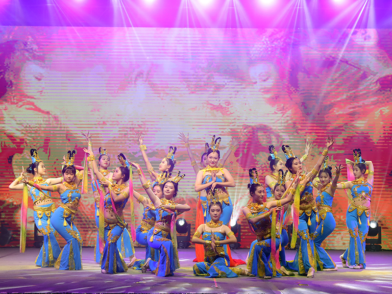 晚会在开场舞《心动的信号》中拉开帷幕,热情的舞蹈带动了现场气氛;合唱《祝你生日快乐》为祖国母亲献上诚挚的祝福;歌舞《花开新时代》唱响了时代的赞歌,歌声激情昂扬,点燃了现场观众的爱国情怀;由2021级新生代表演绎的朗诵《新征程,新一步》用铿锵的誓言向学校表达了要专心学业,早日成才的决心;舞蹈《敦煌飞天》用曼妙的舞姿展现了千年壁画的神秘绮丽;歌曲《光荣与梦想》旋律跌宕起伏,迸发出满腔炽烈的梦想情怀;琵琶独奏《霍元甲》将铿锵有力的琵琶与刚劲有力的武术表演相结合,展现了中华传统乐器的“绕梁”之美及武术的博大精深。最后,由辅导员和学生代表带来的歌曲《我们都是追梦人》圆满收尾,观众掌声不断。