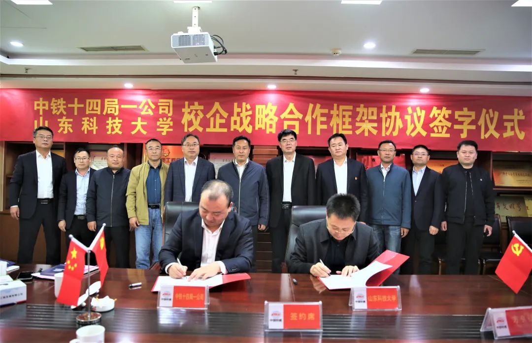资源学院党委书记高尚宇、院长王清标,中铁十四局集团一公司副总经理、总工程师孙晓迈等参加签约仪式。(文:刘钦兴)