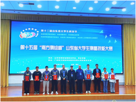 近日,第十三届山东省大学生科技节暨第十五届“南方测绘杯”山东省大学生测量技能大赛在枣庄学院落下帷幕。校区资源学院两支代表队取得佳绩,其中一队(成员:李振博、孙浩、刘建超、赵慧敏 ,指导教师:钟来星、张纯连)斩获团体特等奖、水准测量单项二等奖、导线测量单项三等奖,二队(成员:孔令尧、毕一鸣、黄沥萱、吴爽爽 ,指导教师:钟来星、张纯连)斩获团体特等奖、水准测量单项一等奖。