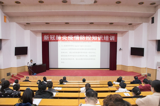 培训会上,张爱华从高校传染病防控国家指南文件、高校的预防控制保障工作、常见传染病事件、新冠疫情的流行概况、国家对新冠疫情防控工作等几个方面,结合图表数据和具体实例,深入浅出为大家讲解了新冠肺炎疫情防控相关知识,介绍了新型冠状病毒的特点、传播途径和预防措施,并就如何养成良好的个人卫生习惯以及日常如何做好个人防护等方面进行了详细讲解。她强调,传染病防控是非常重要的工作,校区方面应当高度重视、组织齐全,抓好各项防控措施的具体落实,师生应保护自身健康,落实个人责任,共同努力,战胜疫情。