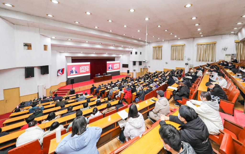 12月24日,泰安市委副书记、市长张涛来到我校,向广大师生宣讲党的十九届六中全会精神。宣讲会由校党委副书记兼泰安校区党委书记、管委主任王少鹏主持。