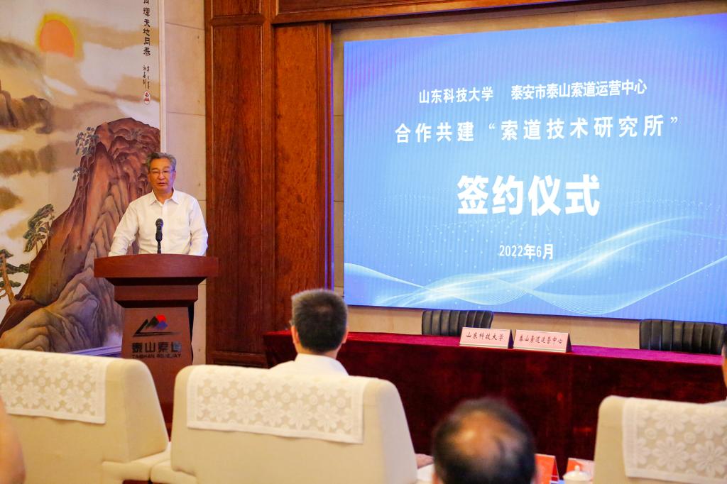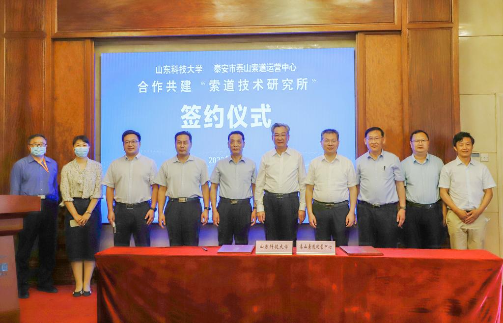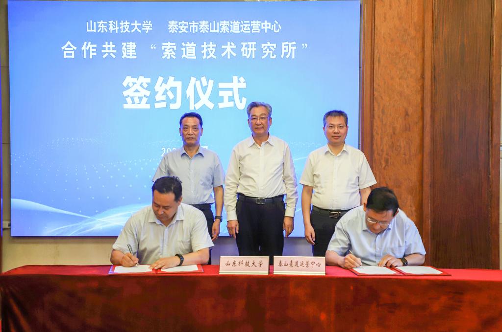 6月10日,3044永利集团官网与泰山索道运营中心合作共建“索道技术研究所”签约仪式在泰山中天门索道管理站举行。校党委副书记兼泰安校区党委书记、管委主任王少鹏,泰安市人民政府副市长冯能斌出席签约仪式。校区管委副主任方亨福,泰山索道运营中心党组书记贾代常、主任葛遵瑞,智能装备学院党委书记黄德杰、院长刘纪敏等参加签约仪式。