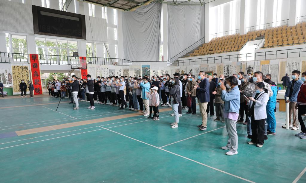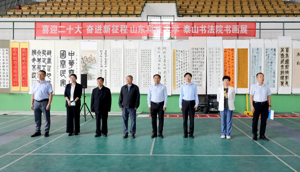 9月24日,由校区联合泰山书法院、驻地社区举办的“喜迎二十大 奋进新征程”书画展在东校园体育馆开展。