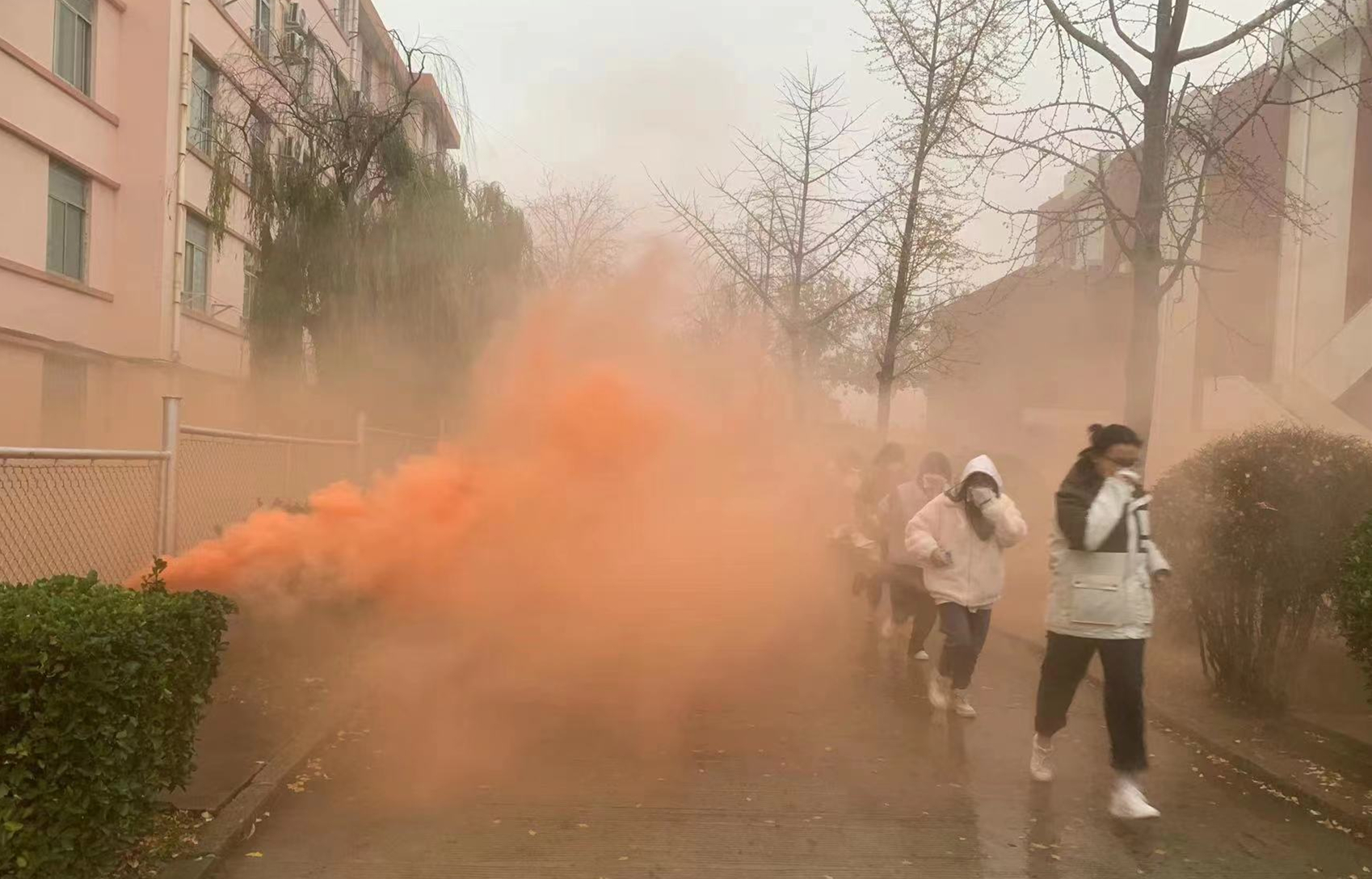 16:20,宿舍楼火灾警报响起,校园110接警后,立即启动应急预案,按照预案规定启动应急响应程序,协调联络组、疏散引导组、消防救援组、秩序维护组、场地保障组和医疗救护组等立即响应,马上开展工作。3分钟内4名校园微型消防站师生志愿消防队员到达现场灭火。疏散引导组在2、5、6号学生宿舍楼迅速组织学生紧急疏散,按照指定逃生路线,沿着指示标识方向,利用逃生通道及时离开模拟火灾现场,760名学生仅用时4分钟就快速疏散到室外安全地带。整个疏散过程中,各部门各司其职配合默契、疏散路线清晰畅通、组织工作严谨协调,演练活动达到了预期目标。