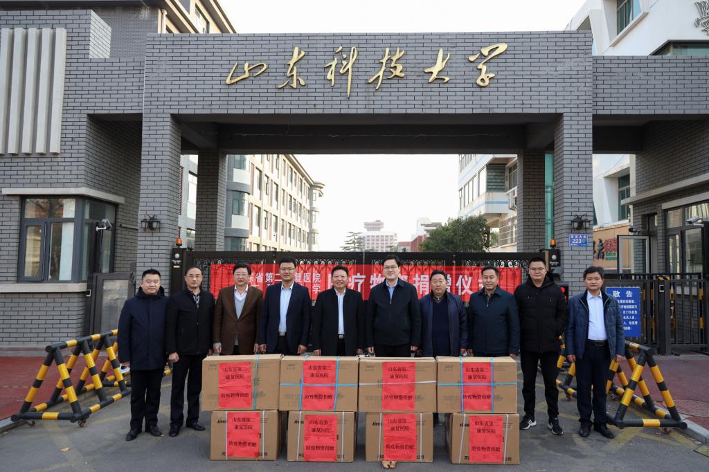 12月3日,山东省第二康复医院党委书记王伟,党委副书记、院长刘钒,党委副书记刘雨等一行向泰安校区捐赠N95口罩、医用检查手套等疫情防控物资。校党委常委、组织部部长陈涛,校区管委副主任逄杰文、方亨福,后勤管理部、资产管理办公室相关负责人参加捐赠仪式。