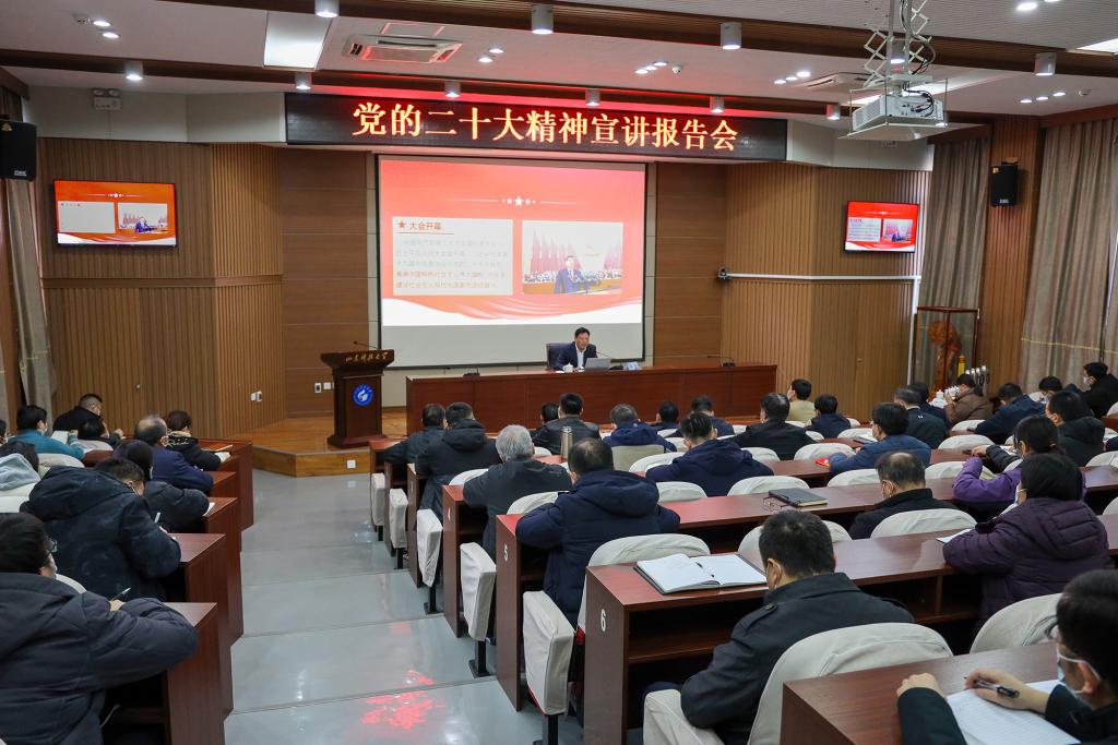 陈涛从党的二十大概况、党的二十大的重大意义、党的二十大报告的框架结构和主要内容、党的二十大报告的核心要义、学习贯彻党的二十大精神等五个方面,紧扣宣讲主题,对党的二十大精神进行了全面宣讲和系统解读。