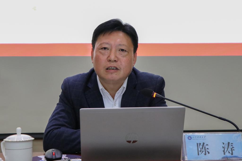 陈涛指出,学习好宣传好贯彻好党的二十大精神,是当前和今后一个时期的重大政治任务,要在全面学习、全面把握、全面落实上下功夫,结合师生思想和工作实际,采取多种形式,从严从实抓好学习宣传贯彻,推动党的二十大精神入脑入心、走深走实。一是准确把握党的二十大报告的主要内容,逐字逐句学习、反反复复研读,系统对照梳理、深入思考琢磨,真正做到学深悟透、融会贯通。二是准确把握学习党的二十大精神的基本路径,通过系统学习、学理阐释、大众宣讲、精准传播等方式,让党的创新理论更加深入人心。三是努力践行以人民为中心的发展思想,树立以师生为中心的发展理念,落实立德树人根本任务,深化教育教学等各项改革创新。四是推进“四个伟大”勇担历史使命。始终坚持和捍卫“两个确立”,增强“四个意识”、坚定“四个自信”、做到“两个维护”,把党的二十大作出的一系列重大举措、重大部署落实到具体工作中、体现在具体行动上。