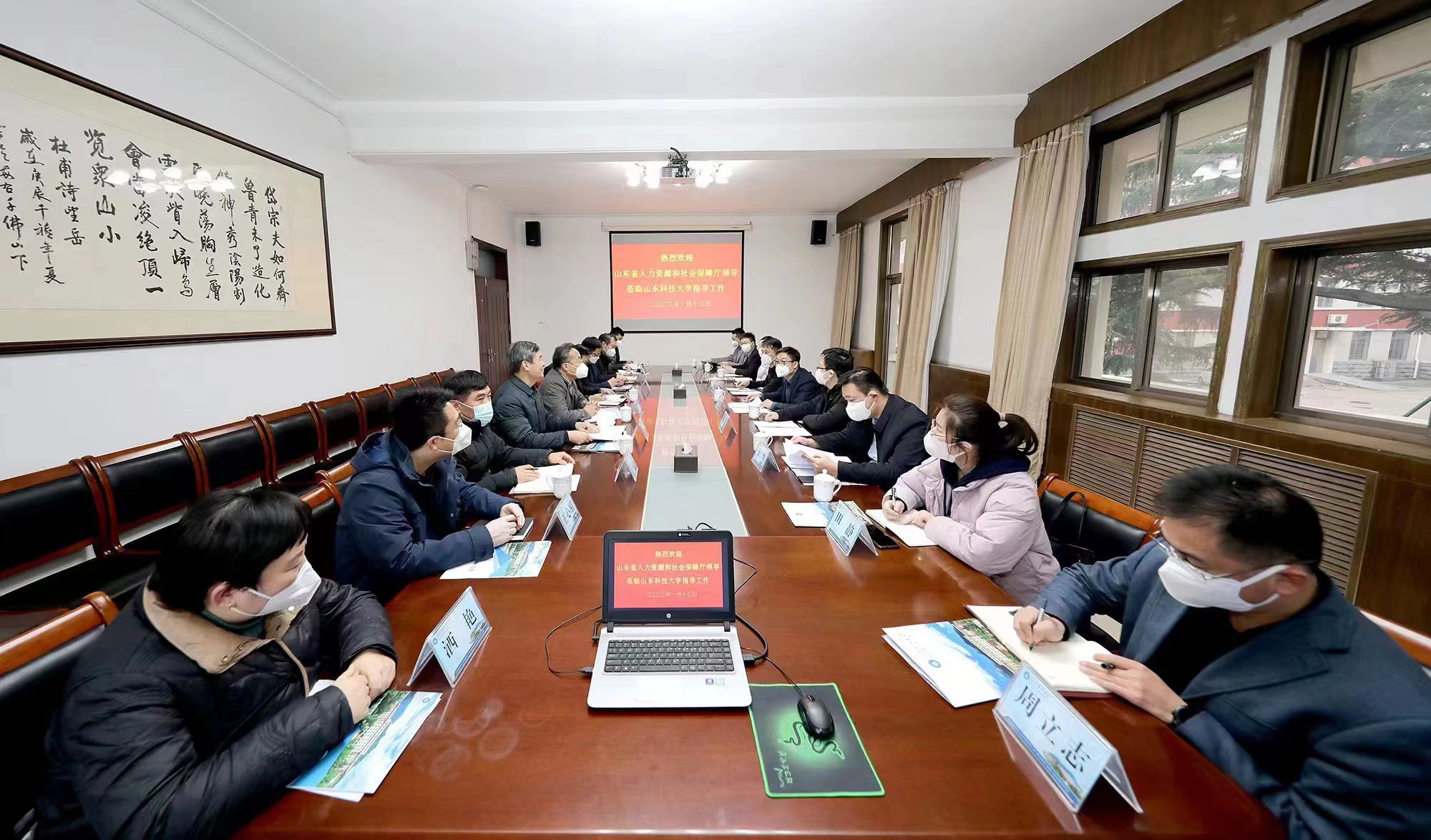 1月13日,山东省人力资源和社会保障厅就业促进处(农民工工作处)处长董廷杰一行9人来校调研毕业生就业工作,泰安校区党委副书记王民会见了客人。校区管委委员、学团工作部主任戴东宝,学团工作部及各学院(部)相关人员参加座谈。