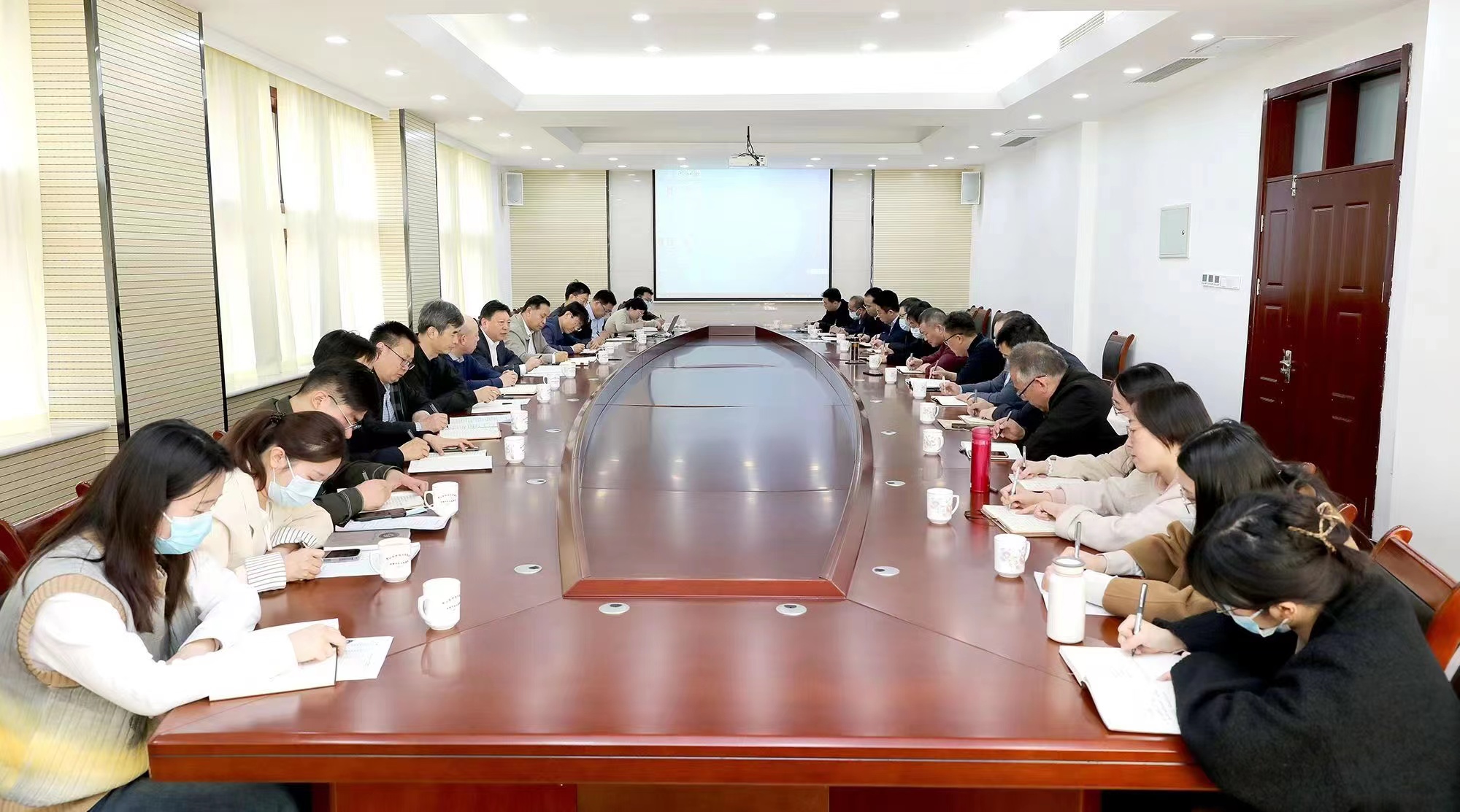 党政办公室、教学科研部、学团工作部及各学院(部)主要负责人,2023届毕业生辅导员参加会议。(学团工作部供稿 图:任卫兵)