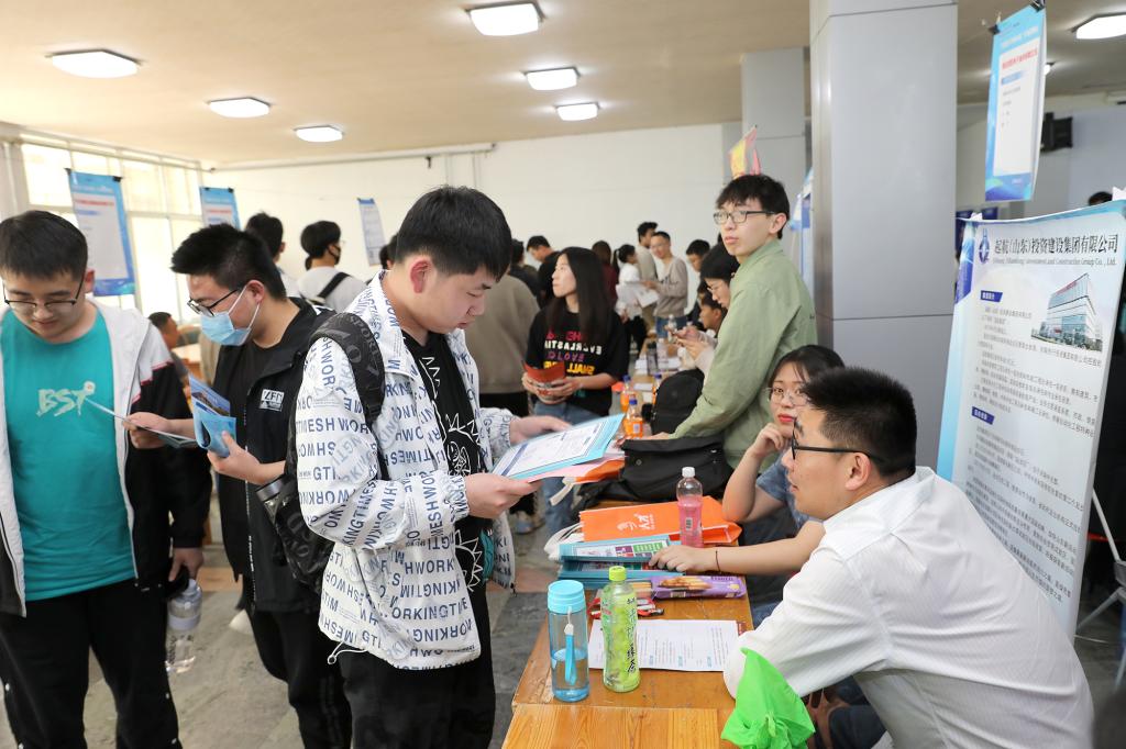 签约仪式后,校地双方联合举办了“才聚岱岳•共创未来”专场招聘活动。来自岱岳区的20家优质企业共为毕业生提供岗位83个,招聘人数376人。(学团工作部供稿 图:任卫兵)