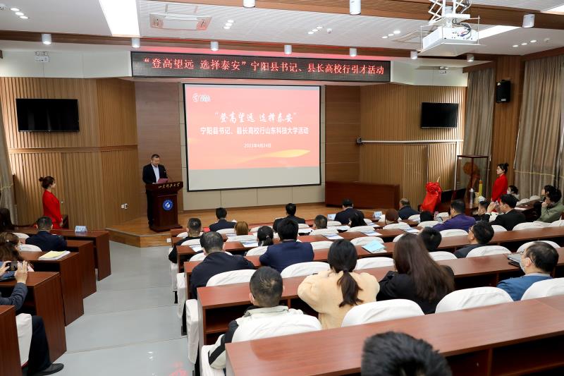 签约仪式上,方亨福对赵磊一行的到来表示热烈欢迎,详细介绍了学校和泰安校区情况。他说,近年来,在上级和驻地党委、政府的大力支持下,学校事业蒸蒸日上,呈现出良好的发展态势。宁阳县书记县长高校行活动的举办,充分体现了宁阳县委、县政府对人才工作和教育科技工作的高度重视,是关爱大学生就业创业、推介就业政策、拓展就业市场、提供就业舞台的重要举措,必将为泰安市新型工业化强市建设、为现代服务业高质量发展提供强大人才和智力支撑,必将会推动校区毕业生就业创业工作再上新台阶。方亨福表示,希望以此次活动为契机,继续加强与宁阳县在人才培养、科技服务、产学研合作、学生就业创业等方面的对接,积极为地方经济和社会发展作出科大贡献。希望双方充分利用校地优质资源,完善校地沟通与合作机制,搭建互动平台,深化各层次交流,实现共促互融、互惠共赢发展。