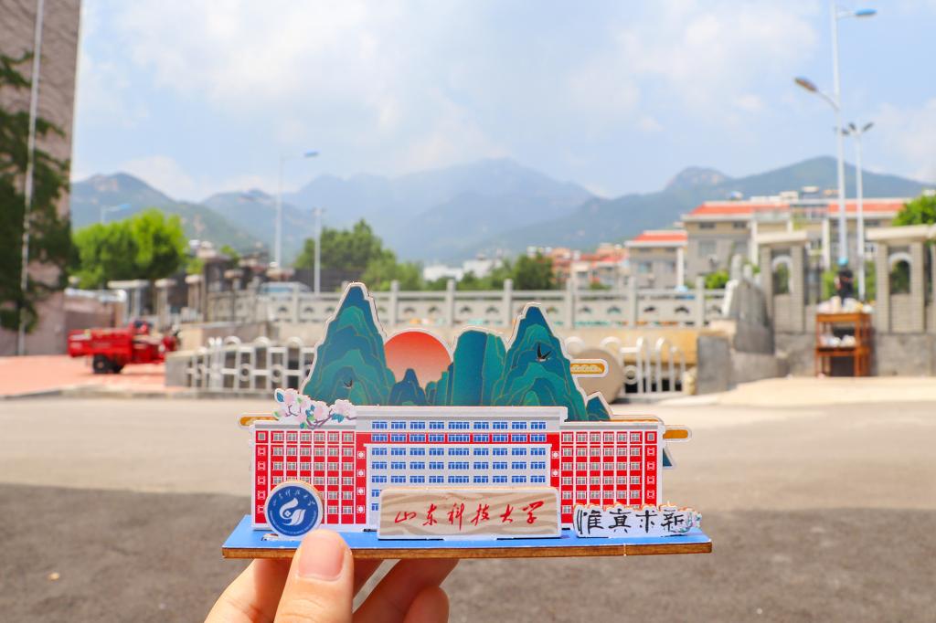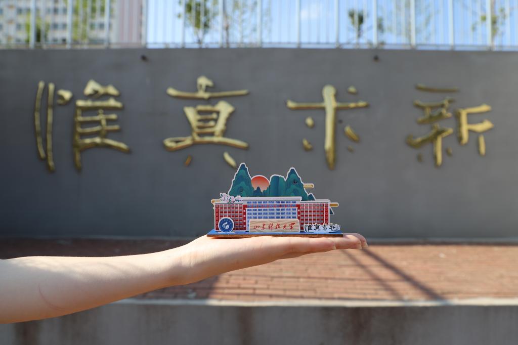 立体明信片的信封色调为喜庆的中国红,中间辅以浅色腰封,腰封上以烫金文字镌刻着致2023届毕业生的寄语:“不负热爱,奔赴山海”,整体设计端庄大方,富有美感。拼装完成后的明信片色彩丰富,场景感十足。汇聚了代表学校形象标识的校名、校徽、校训、校园标志性建筑和中华泰山等元素。绽放的玉兰花图案,象征着嵙大学子对知识永怀赤诚之心,期盼着玉兰花开,相约未来。耸立的泰山景观图案,寓意嵙大学子志存高远,勇攀高峰。泰山之巅的日出景象昭示着冉冉升起的希望和生机,祝福嵙大学子大展宏图,前程似锦。