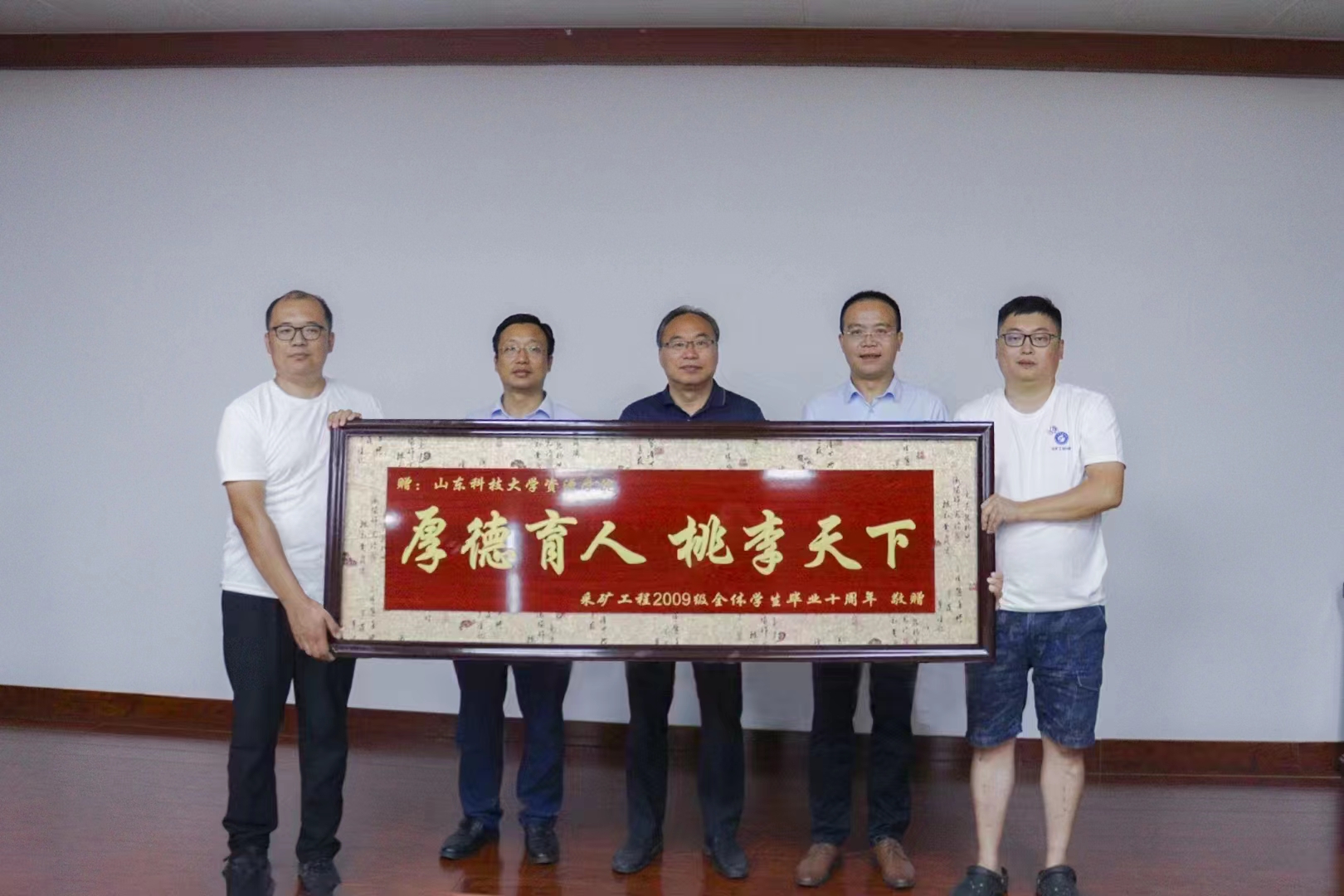 返校聚会期间,采矿工程2009级校友向校区捐赠了花瓶,向学院捐赠了“厚德育人 桃李天下”牌匾。(资源学院供稿 图:任卫兵)