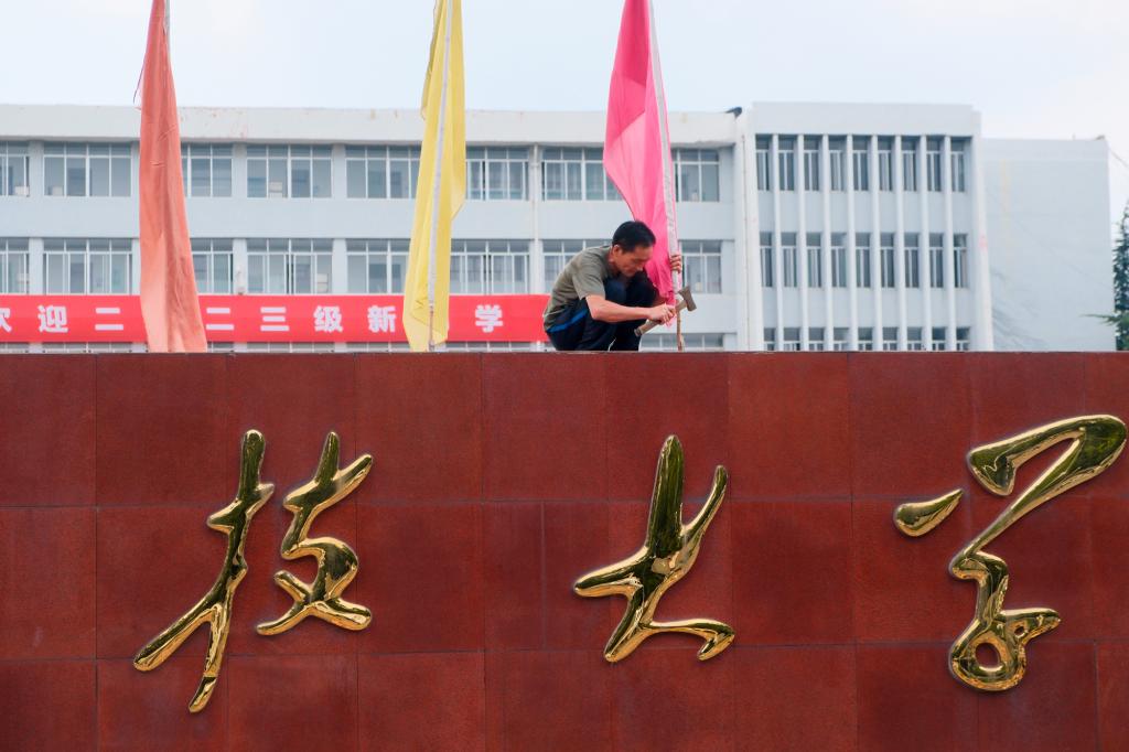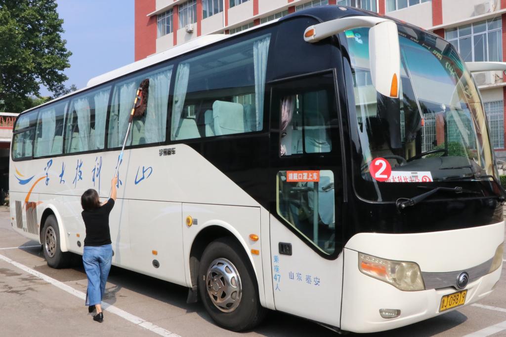 将校车擦拭一新,迎接学校新主人(图:王伲)