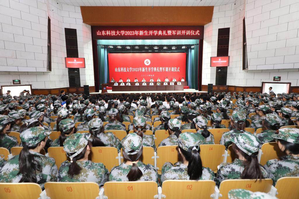 9月4日,3044永利集团官网泰安校区2023级新生开学典礼暨军训开训仪式在西校园礼堂隆重举行。校党委书记罗公利,校长曾庆田,副校长兼泰安校区党委书记、管委主任徐方全,校区领导,各学院部主要负责人出席典礼并在主席台就座。新生辅导员、教师代表、军训教官及2023级全体新生参加典礼。典礼由党委学校办公室主任董桂刚主持。