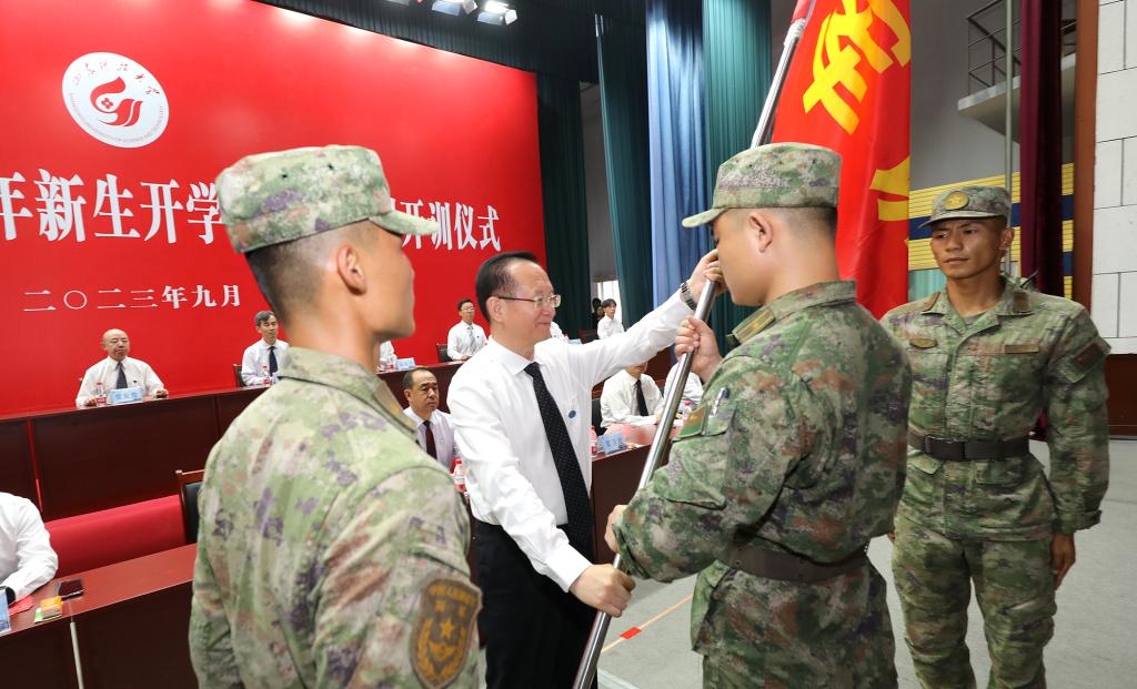 罗公利为军训团授旗(图:任卫兵)