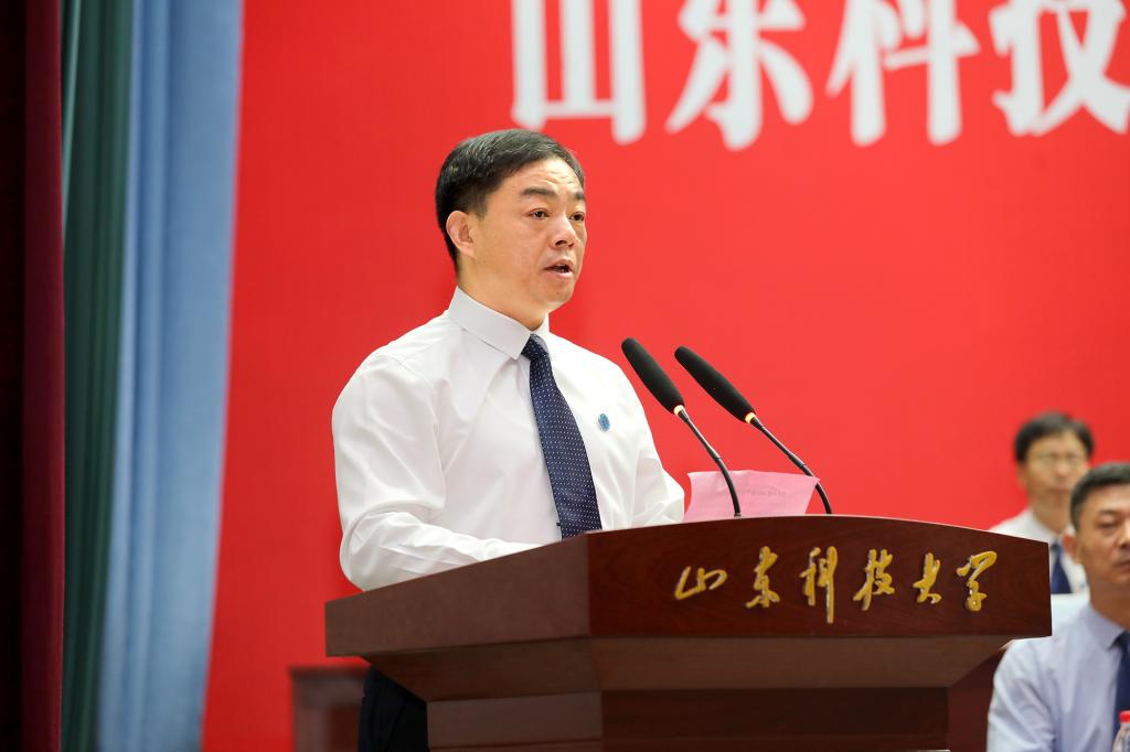 曾庆田指出,今天的山科,是一所风景秀丽、具有深厚文化底蕴的大学,是一所人才辈出、具有浓厚家国情怀的大学,是一所守正创新、不断追求卓越的大学。70多年来,学校一路栉风沐雨,形成了以“惟真求新”校训、“爱校奉献、敬业实干”传统、“坚韧不拔、发奋图强”精神为代表的深厚校园文化,这是科大人奋力前行的不竭动力和精神支柱。70多年来,学校始终不忘高等教育初心,牢记立德树人使命,立足国家经济社会发展需求,取得一个个骄人成绩,为社会培养了40余万名高素质人才,为推动行业进步和地方经济社会发展作出了积极贡献。泰安校区是科大发展壮大的地方,是一方水土的沉淀,见证了学校发展的许多历史时刻,近年来,校区生源质量屡创新高,办学水平和社会声誉不断提升。