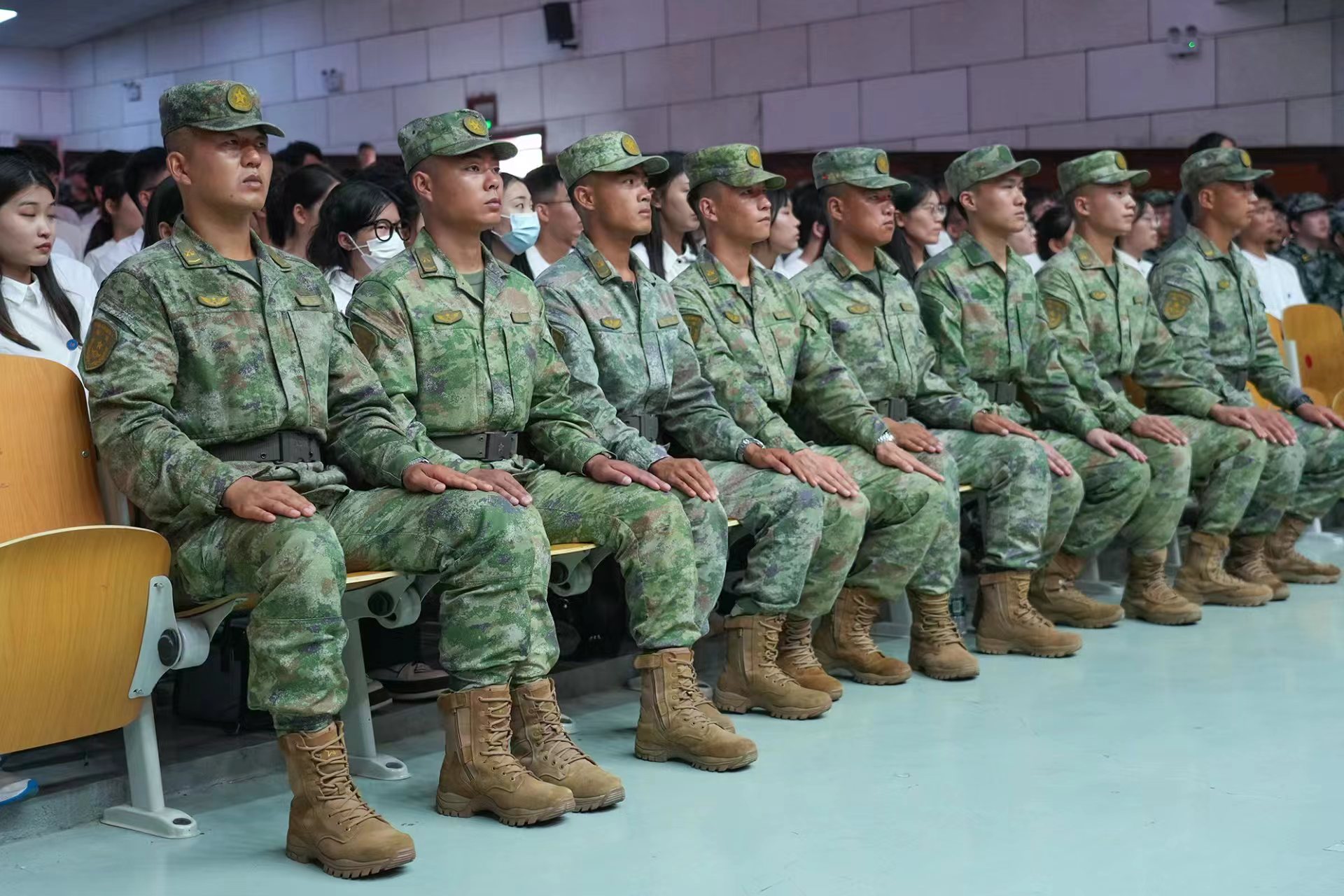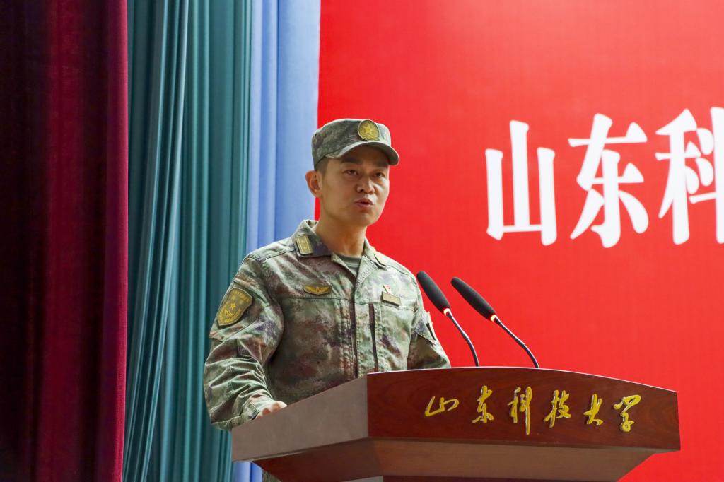 与会领导为新生代表佩戴校徽,全体新生面对国旗进行宣誓。承训部队首长梁卫波在典礼上讲话,教师代表赵慧奇、研究生代表张晓童、本科生代表谢先驰分别在典礼上发言。(文:王晓娜 李文慧 刘钦兴)