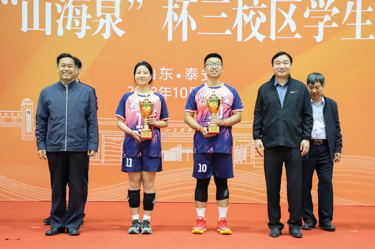 比赛现场气氛紧张热烈,精彩不断。场下教练员精心运用技战术、排兵布阵。现场观众文明观赛,呐喊助威。场上裁判员专业精准执法,运动员默契配合、每球必争。一次次精彩救球、大力扣杀、跃起拦网引得观众阵阵掌声。比赛你来我往,比分也犬牙交错,经过激烈角逐,青岛校区代表队获得男子、女子组冠军,泰安校区代表队获得男子、女子组亚军,济南校区代表队获得男子组季军。