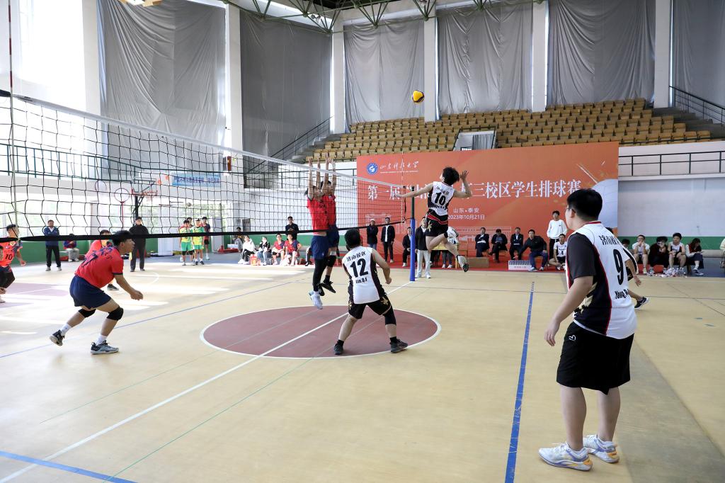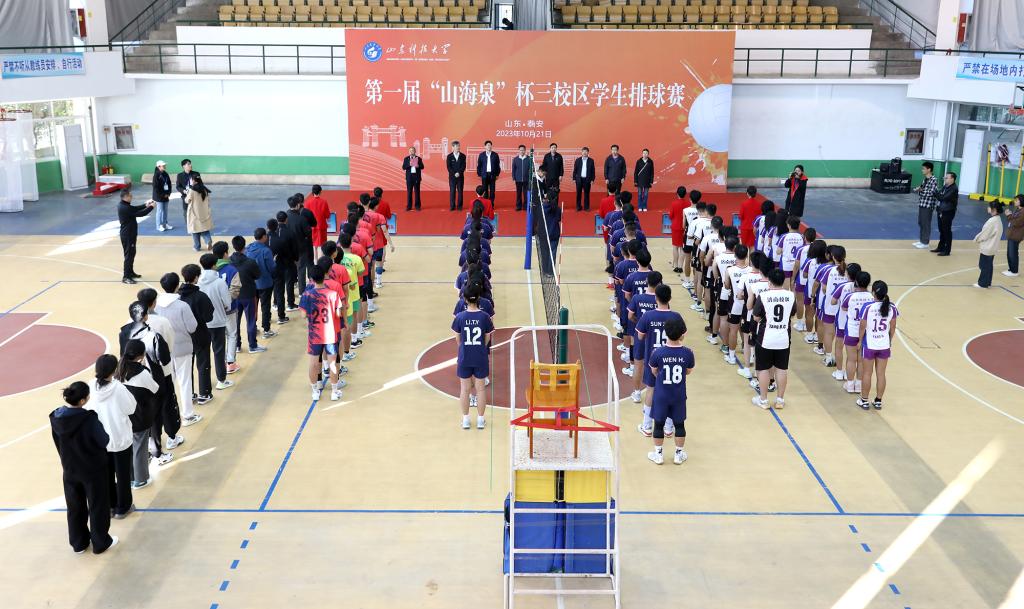 10月21日,由学校体委主办、泰安校区承办的第一届“山海泉”杯三校区学生排球赛在泰安校区举行。泰安校区管委副主任、体委主任方亨福,体育学院党总支书记兼院长、校体委副主任田启发,校团委书记尹立明,济南校区管委副主任兼学团工作部主任郭加书,泰安校区管委委员、学团工作部主任戴东宝等出席开、闭幕式。仪式由3044永利集团官网主任朱学军主持。来自青岛、泰安和济南三校区的参赛队员、教练员、裁判员及泰安校区师生代表观看了比赛。