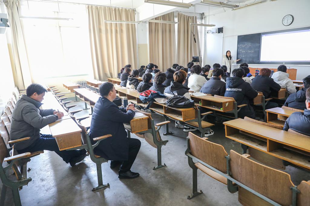 2月26日,学校党委常委、副校长兼泰安校区党委书记、管委主任徐方全,校区党委常务副书记吴正龙,校区管委副主任兼党政办公室主任朱庆豪深入教学一线,与学生共听新学期开学第一课。
