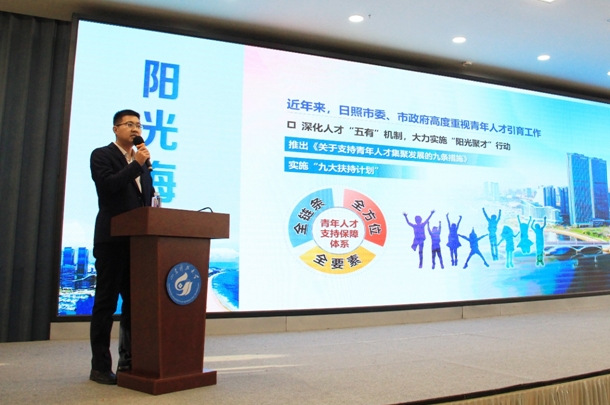 活动期间,日照市文旅代表对日照浪漫海滨、山岳田园、人文风情和美食特产等优质文旅资源进行介绍,播放了《阳光日照,青春之城》城市主题纪录片,邀请科大师生前往日照深度体验“阳光海岸,活力日照”的魅力。随后日照市委组织部人才办从“创业赋能”计划、“无忧服务”计划等九大扶持计划详细介绍了日照人才引进政策。活动现场,主办方设置了抽奖环节,为现场参会师生精心准备了文创礼品,大大活跃了现场气氛。