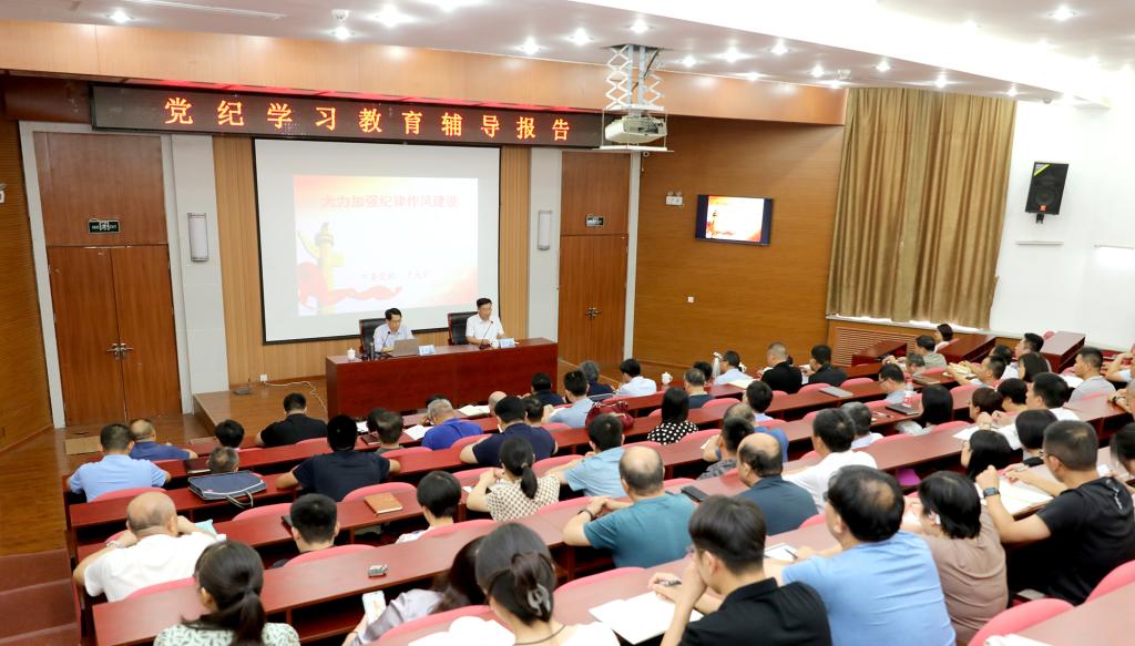 6月14日,校区举办党纪学习教育专题辅导报告会,中共泰安市委党校党史党建教研部主任孟凡强教授作专题辅导报告,校区党委常务副书记吴正龙主持会议,校区科级以上干部(含学术副院长、副主任)、各党支部书记参加报告会。